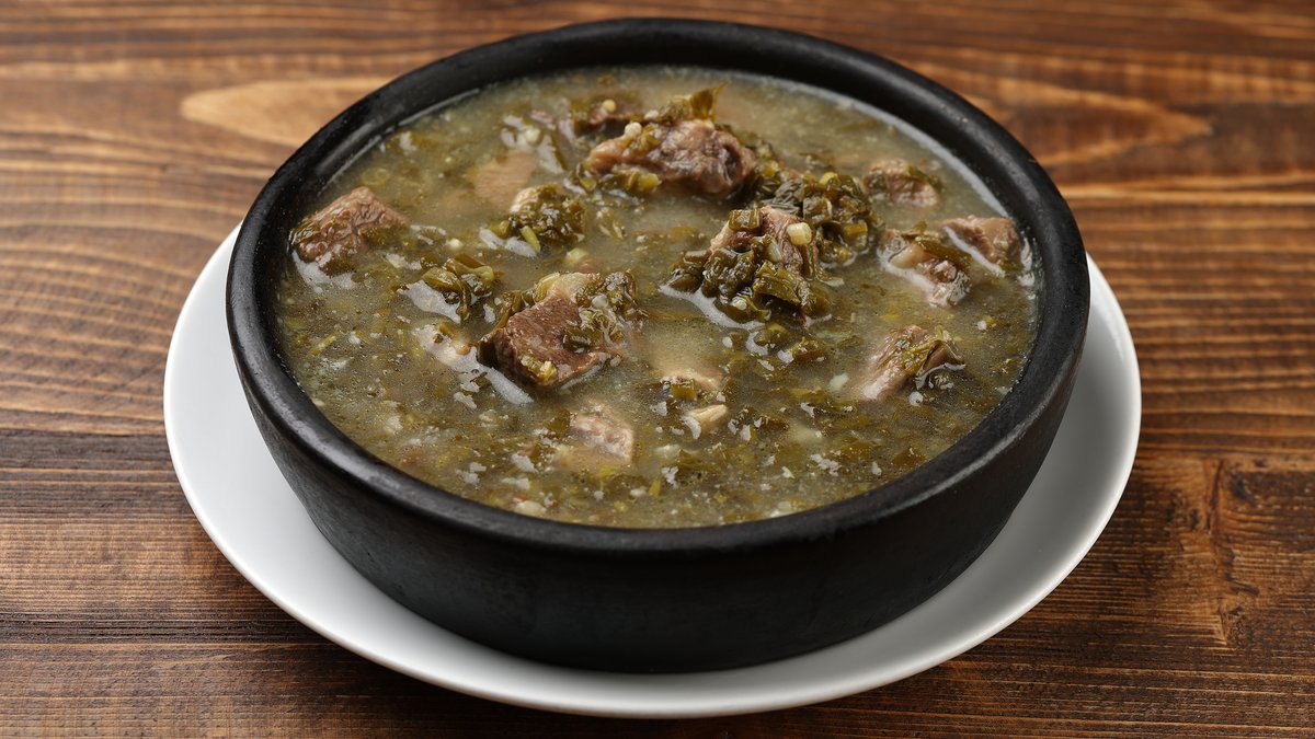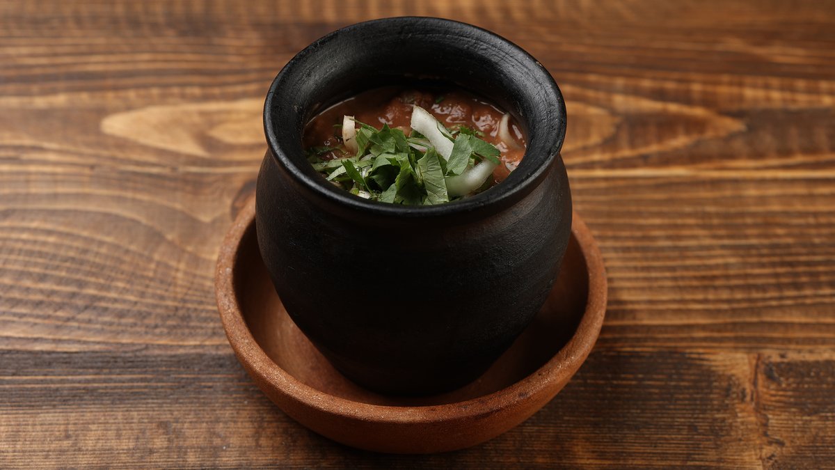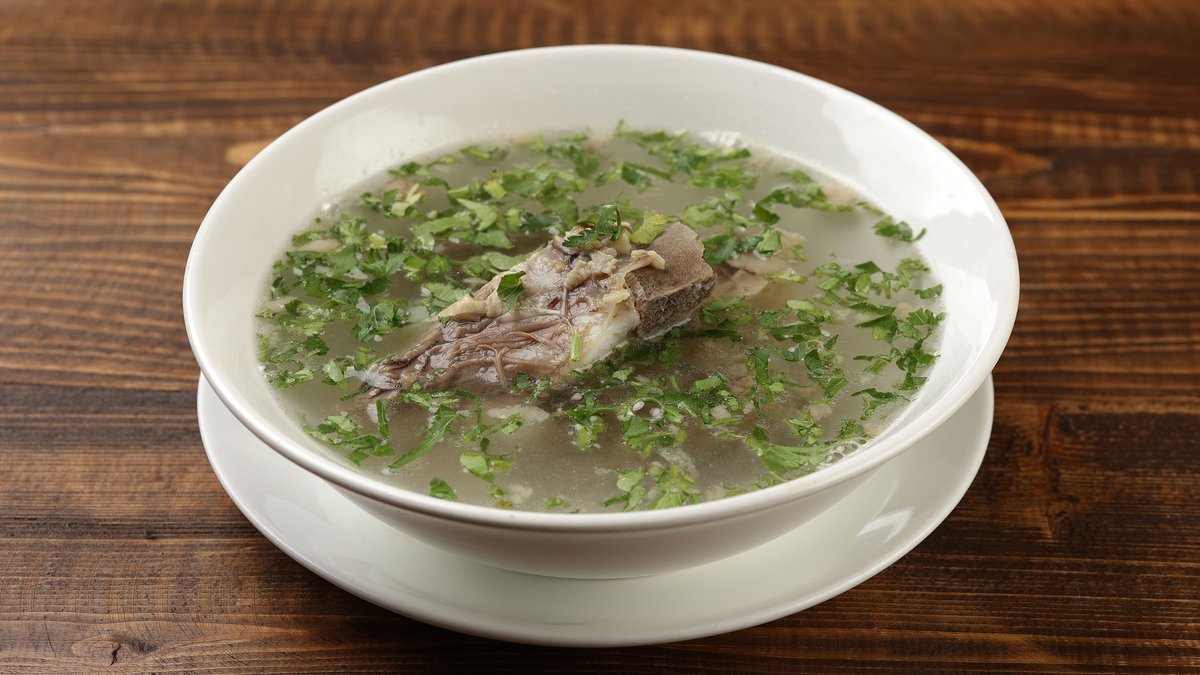 საქონლის ხორცი, ძირა, ქინძი, ხახვი, მარილი