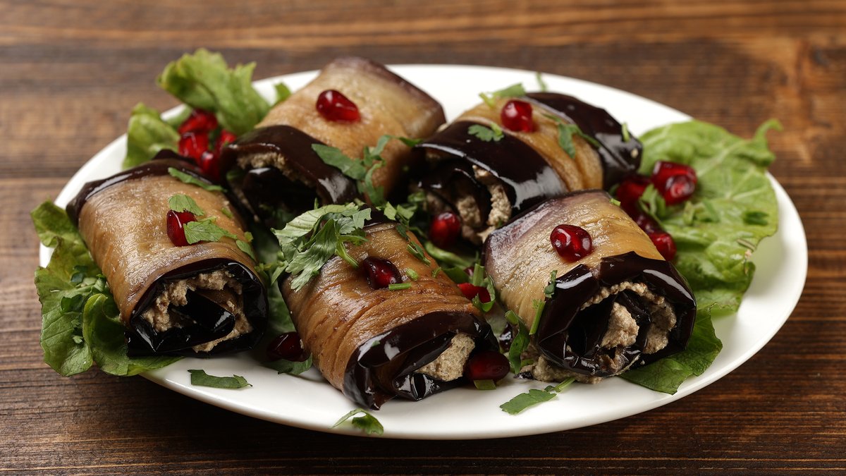 შემწვარი ბადრიჯანი, ნიორი, ნიგოზი, ხახვი, ძმარი, მარილი, წიწაკა, უცხო სუნელი, ხმელი ქინძი
