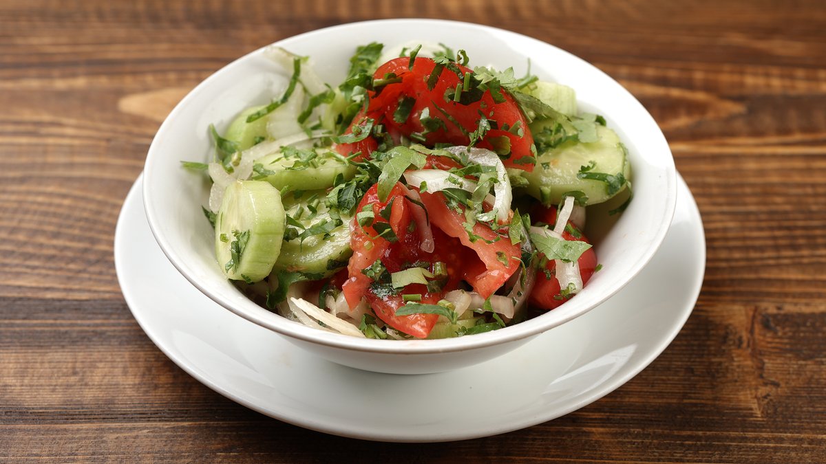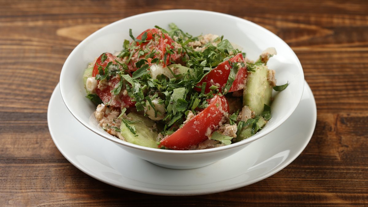 კიტრი-პომიდვრის სალათი ნიგვზით