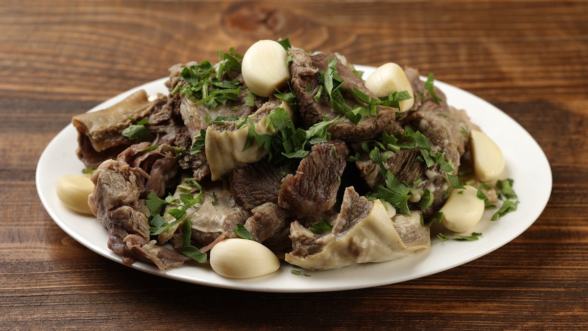საქონლის კანჭი, საქონლის ფაშვი, მარილი, რძე, ნიორი