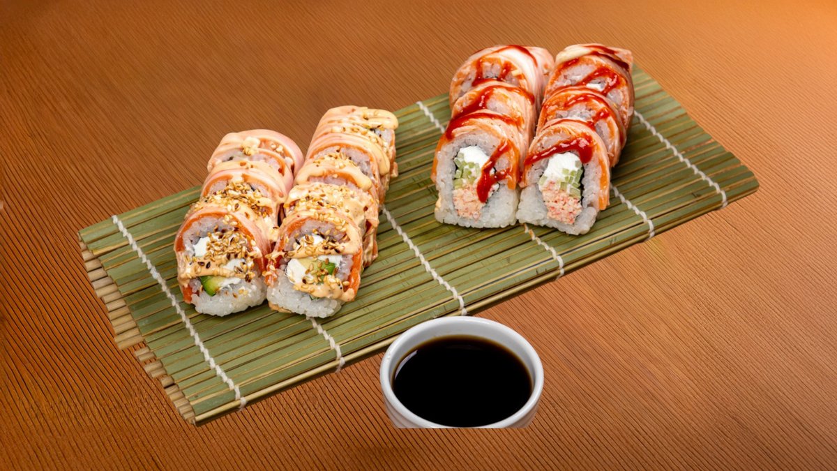 გველთევზა,ორაგული,კიტრი,კრემყველი,საფირმო სოუსი,სეზამი
