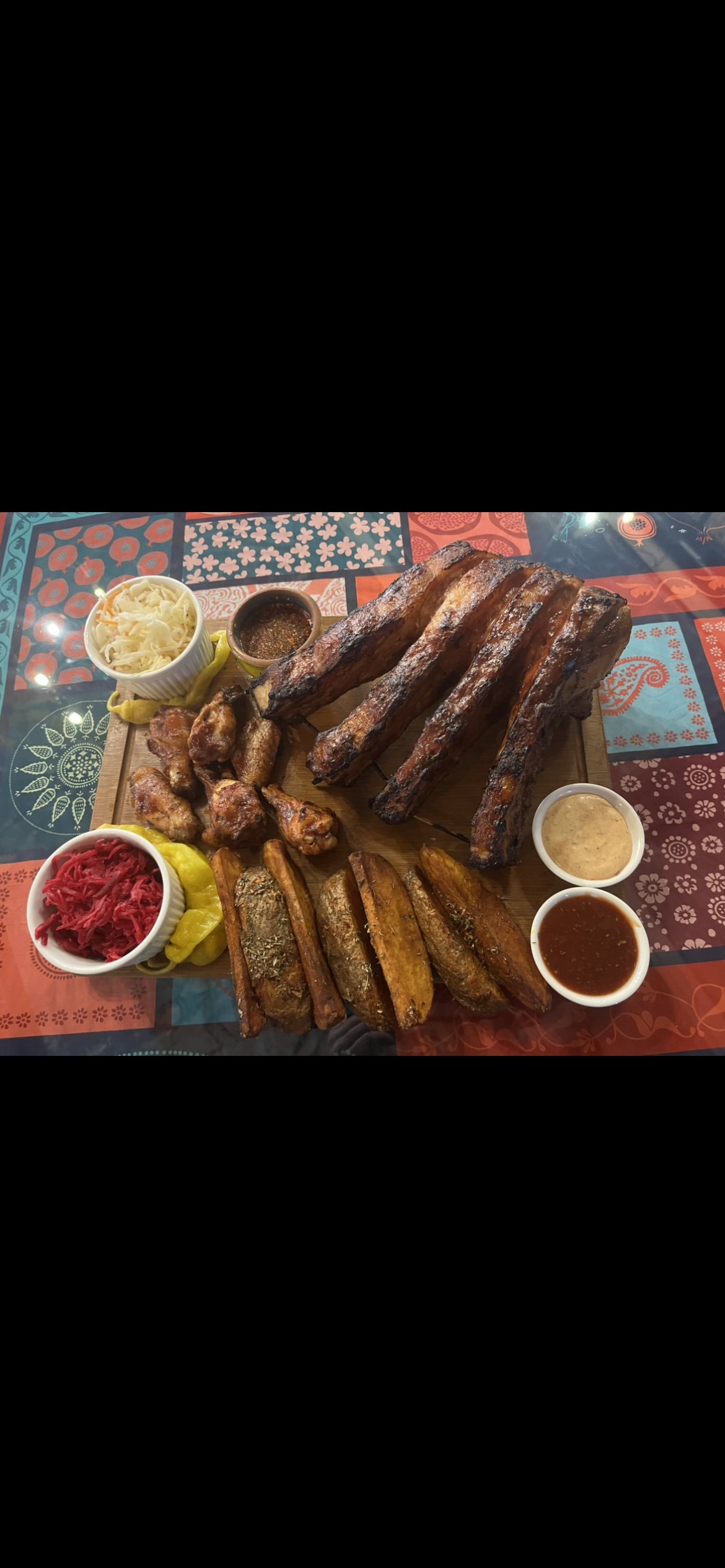 ღორის ნეკნი(2კგ) ბარბექიუს სოუსში 3/4 პერსონაზე/ასევე ქათმის ფრთები (6 ცალი)მექსიკური კარტოფილი,მწნილის მიქსი,მექსიკური სოუსი,აზიურ სოუსი.