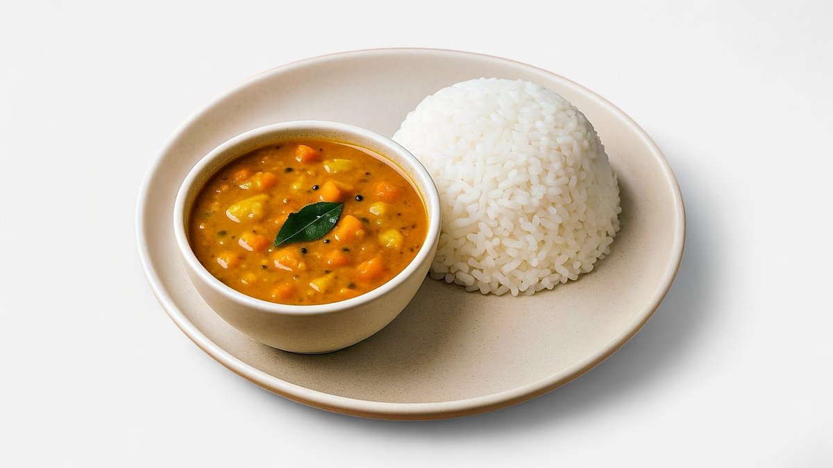 Sambar Rice is a comforting South Indian dish where fluffy steamed rice is mixed with sambar — a tangy, mildly spicy lentil stew cooked with tamarind, fresh vegetables, and aromatic spices. Served hot, it’s wholesome, flavorful, and perfect for a hearty meal. სამბარის ბრინჯი სამხრეთ ინდური კერძია, სადაც ფაფუკი, ორთქლზე მომზადებული ბრინჯი შერეულია სამბართან — მჟავე, ოდნავ ცხარე ოსპის ჩაშუშულთან, რომელიც მზადდება თამარინდით, ახალი ბოსტნეულითა და არომატული სანელებლებით. ცხელი მირთმევის შემთხვევაში, ის სასარგებლო, არომატული და იდეალურია გულიანი კერძისთვის.