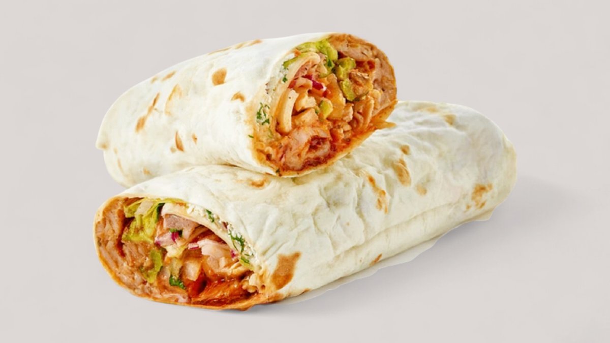 პიტას ლავაში, ქათმის ხორცი, კეჩუპი, მაიონეზი, სალათი, წითელი კომბოსტო, პომიდორი, ხახვი , მწარე წიწაკის მჟავე. (აღნიშნული პროდუქტი იფუთება ფოლგაში)