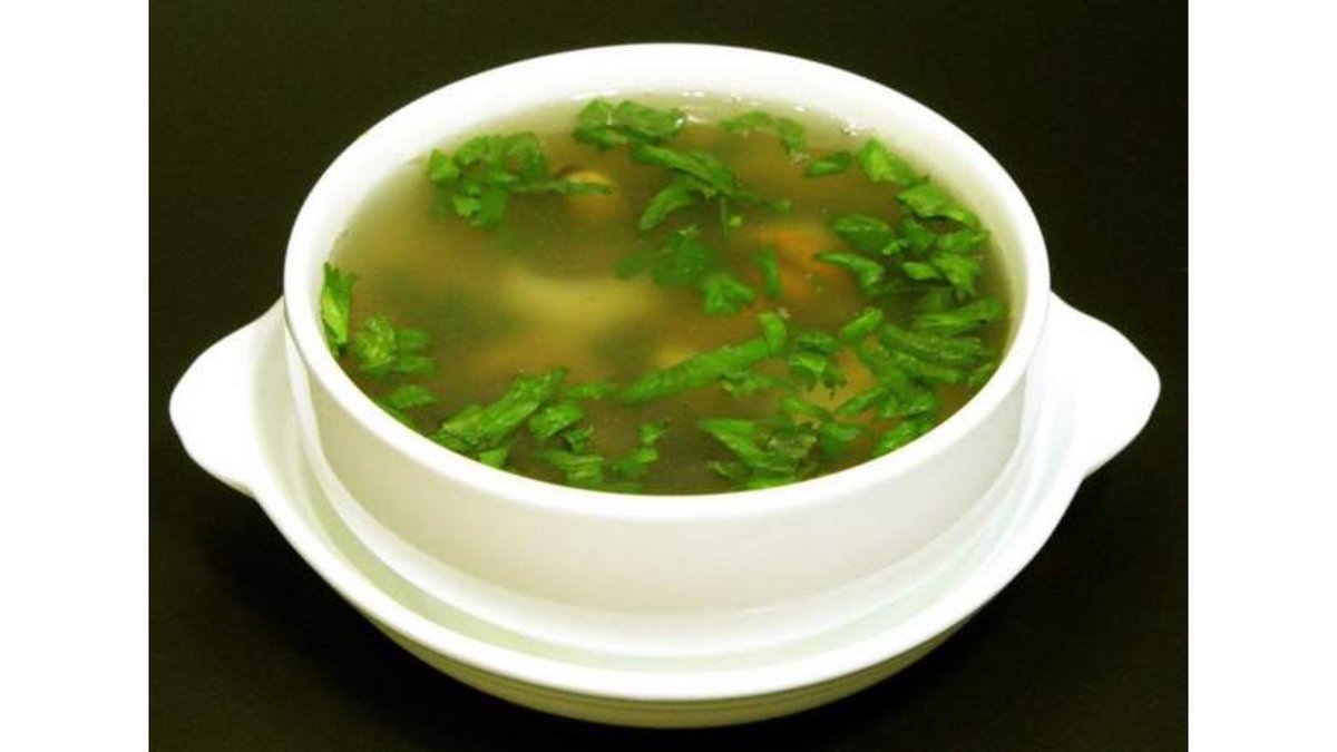 სუპი ზღვის ბალახით და კრევეტით