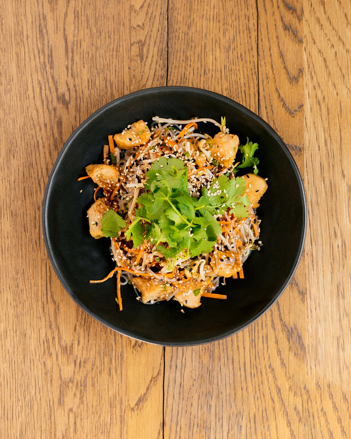 glass noodles with carrot, sprouts and coriander
