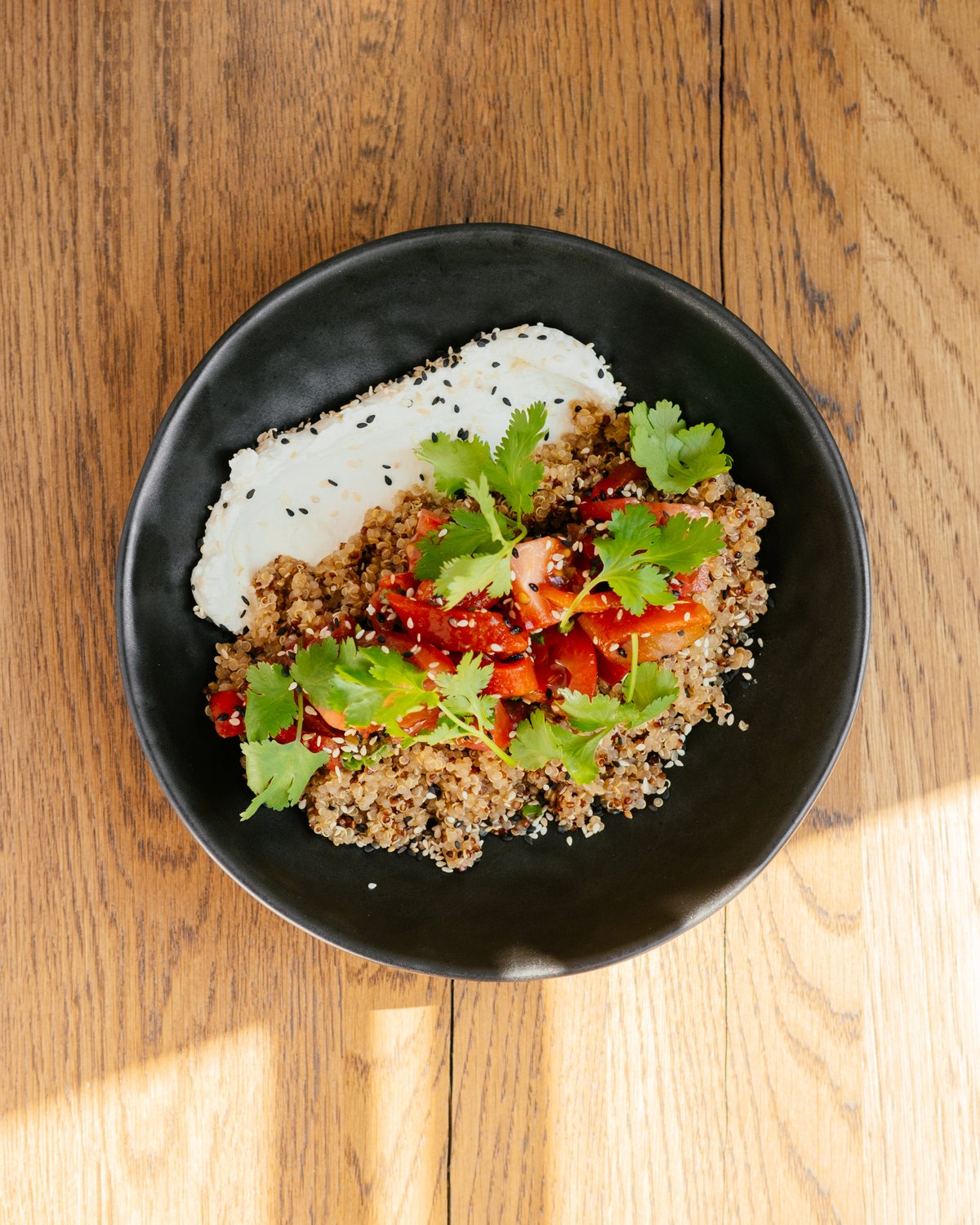 quinoa / pepper / tomatoes / coriander / scallions / cheese