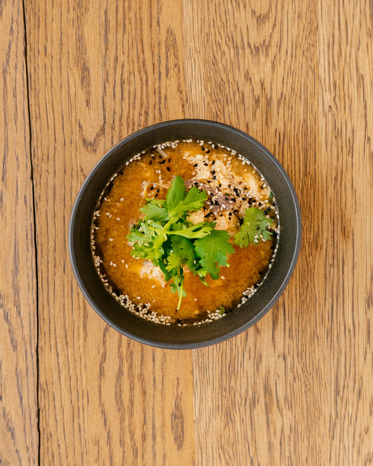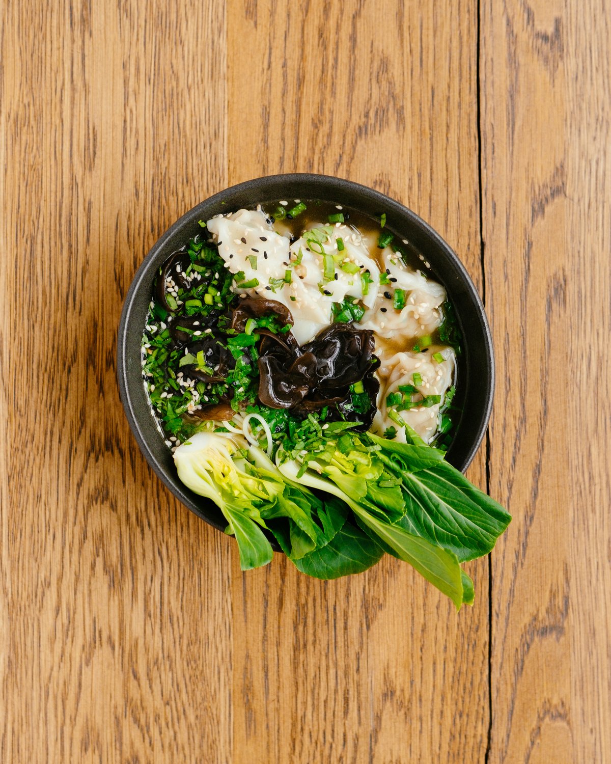 chicken and shrimp wontons / coriander / scallions / bok choy / mushrooms