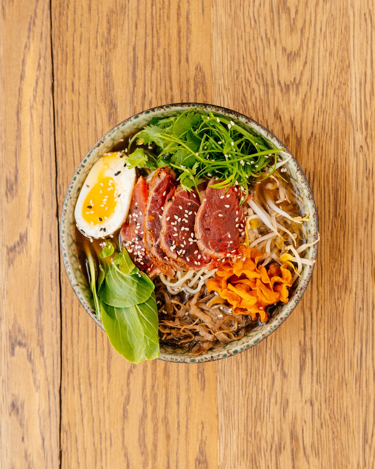 noodles / coriander / scallions / sprouts / carrot / egg / mushrooms / bok choy