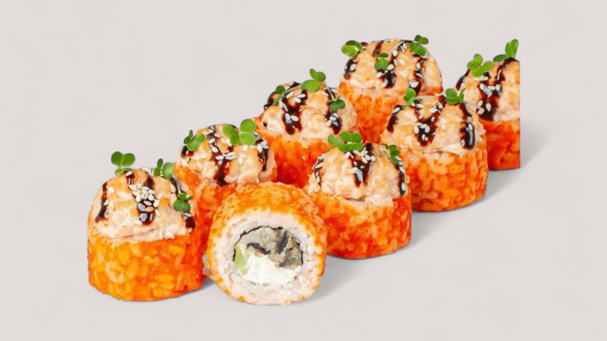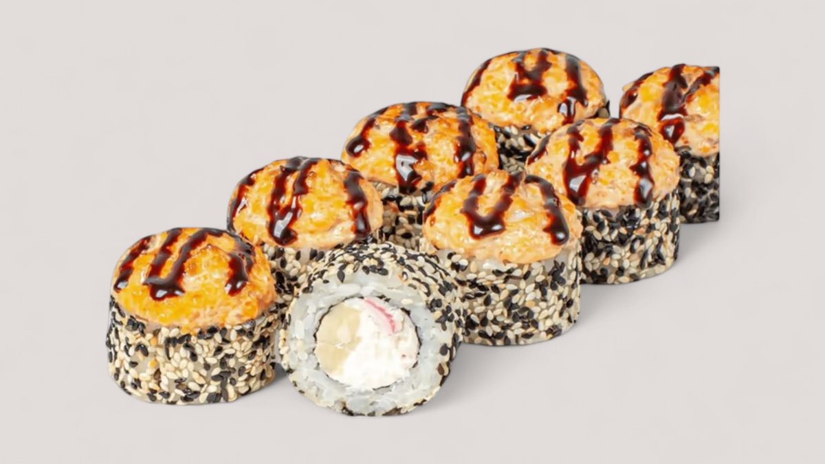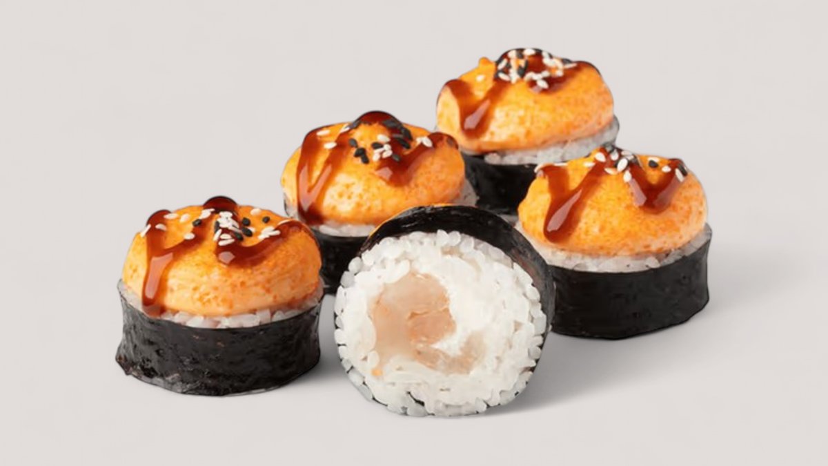 California Roll with Tiger Shrimp, Cheesy Shrimp XL Roll, Spicy Salmon Roll, Baked Salmon Roll with Mozzarella, Baked Tender Shrimp & Crab Roll 1294 g