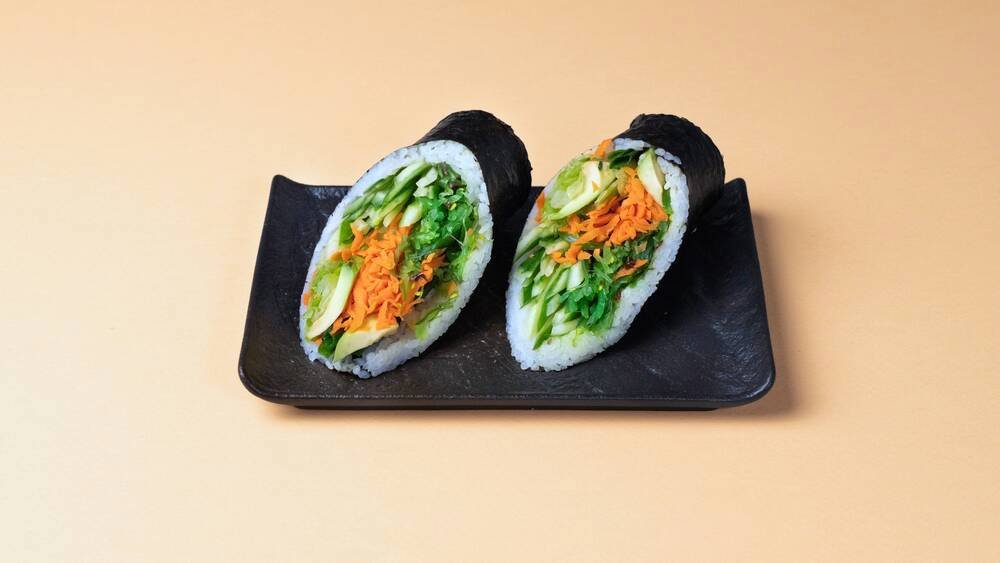 (330გრ) კიტრი, ავოკადო, ჰიაში, სტაფილო, სალათის ფოთოლი, ფორთოხალი, მწვანე ხახვი, ბრინჯი, ჯინჯერი, ვასაბი, სოიოს სოუსი