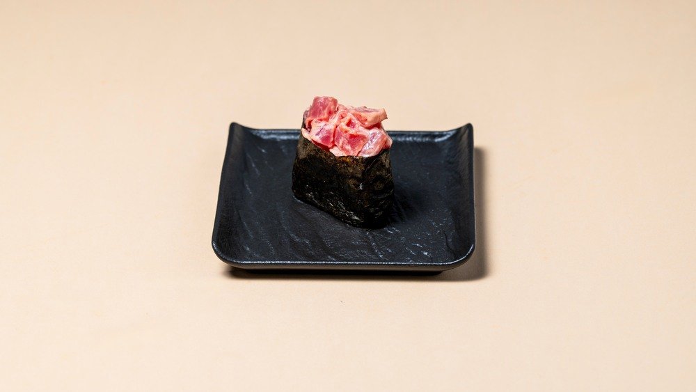 (60გრ) თინუსის ფილე, სფაის სოუსი, ნორი, ბრინჯი , ჯინჯერი, ვასაბი, სოიოს სოუსი
