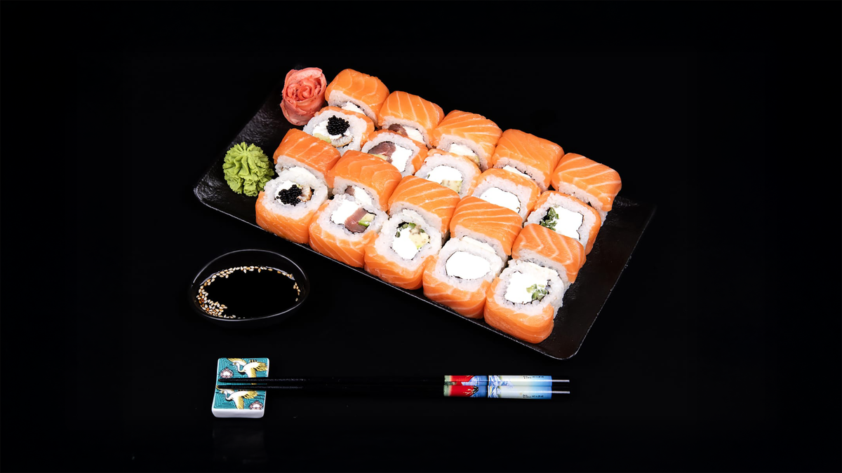 ჯამში: 48 ნაჭერი 8ც. ფილადელფია 8ც. კალიფორნია 8ც. ტემპურა ხრაშუნა უმამი როლი 8ც. სალმონ ტერიაკის როლი 8ც. ორაგულის მაკი 8ც. კიტრის მაკი ნარინჯისფერი ტობიკოს ნაცვლად შესაძლოა იყოს წითელი ტობიკო