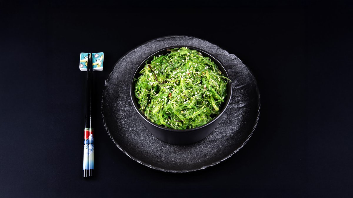 წყლამცენარე ვაკამე, კიტრი,სეზამის მარცვლები, სეზამის სოუსი, ლაიმი