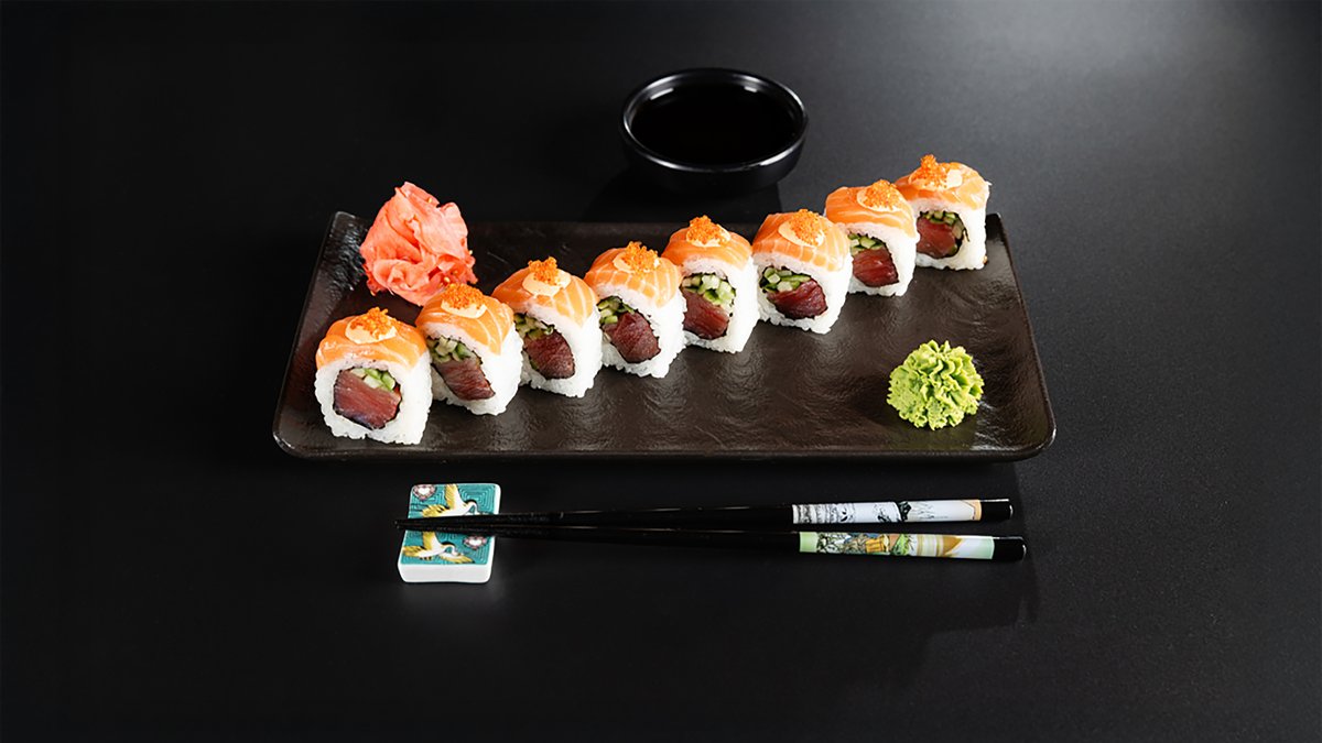 როლი თინუსით, ავოკადოთი, კრემ-ყველითა და ტობიკოთი. 8 ნაჭერი