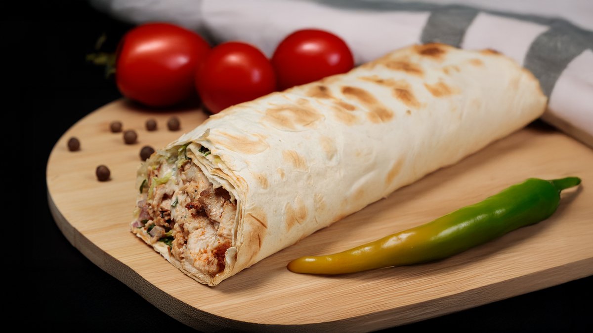 ქათმის ხორცი,სალათის ფოთოლი,პომიდორი,ხახვი წიწაკა,ლავაში კეჩუპი მაიონეზი,ფრი