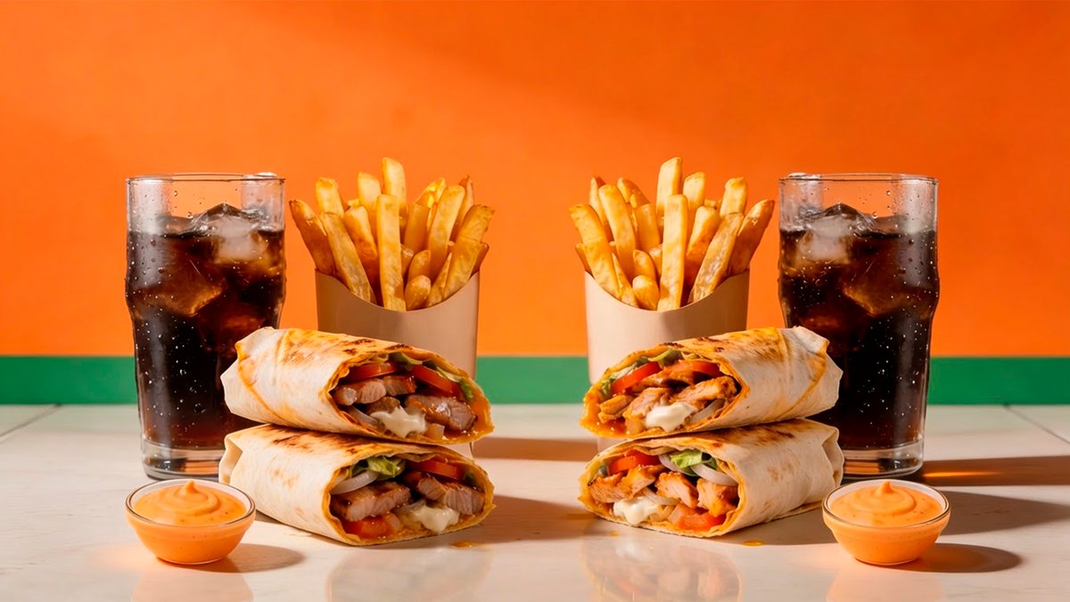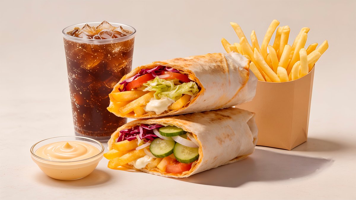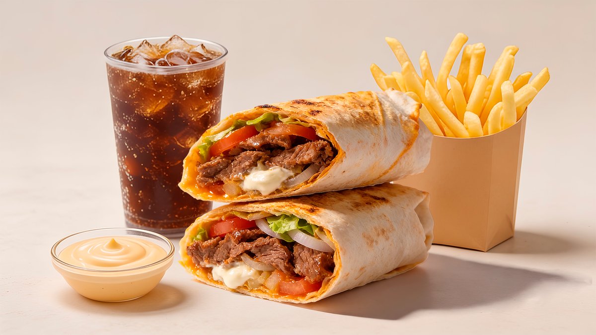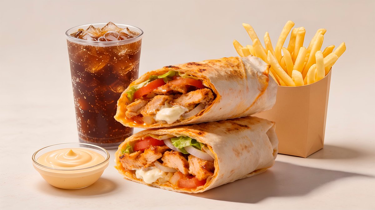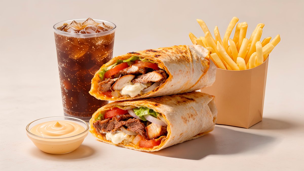 shawarma chicken medium shawarma pork medium frenc fries medium 2 coca cola 2 mix sauce 2