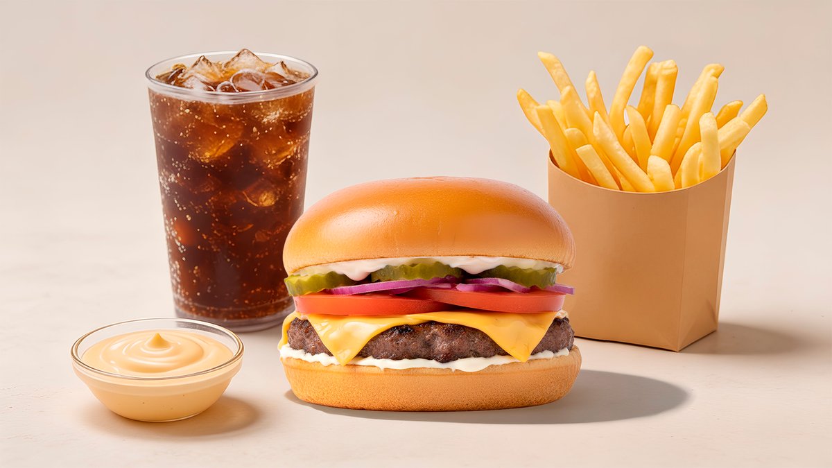 Umami 🍔1 ( ground beef meet ) small French fries 🍟 1 coca cola 🥤1 mix sauce 1