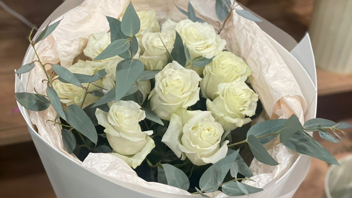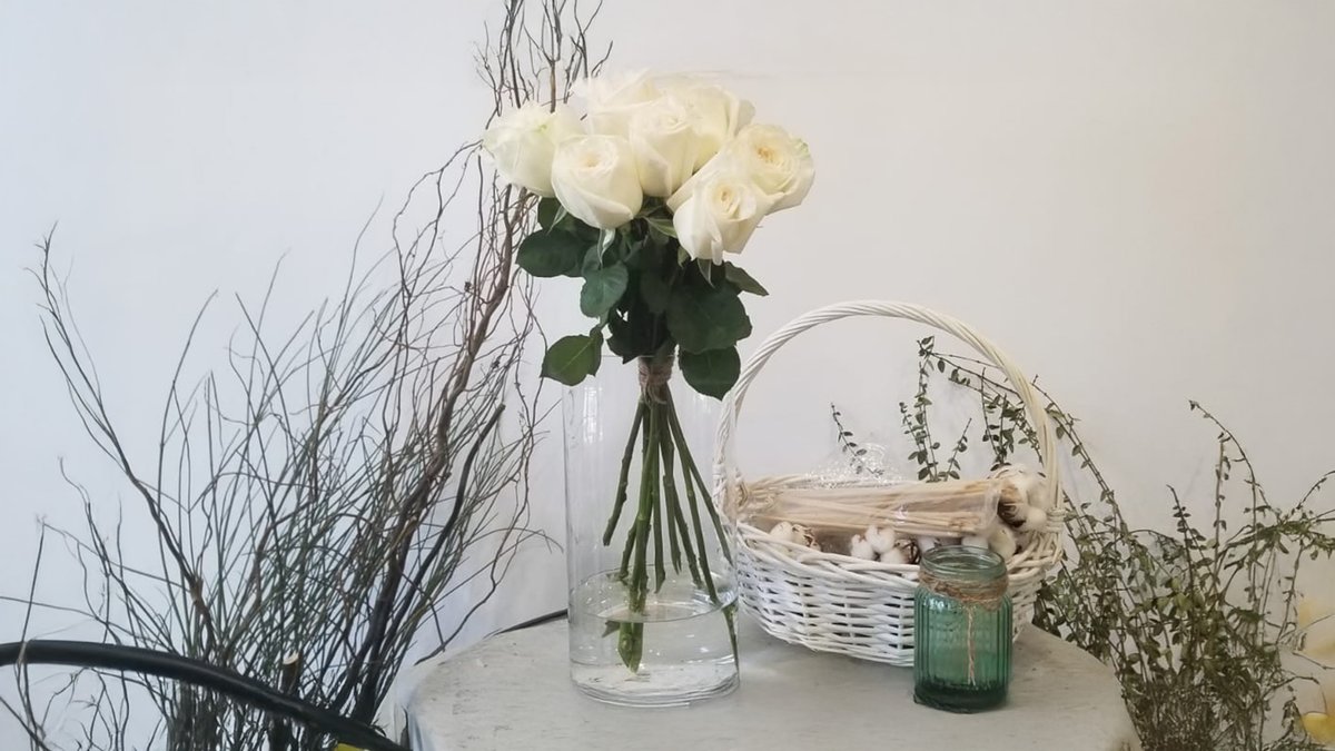 სუპერ ფასი . 10 ცალიანი თეთრი ვარდები 40-45 სმ.