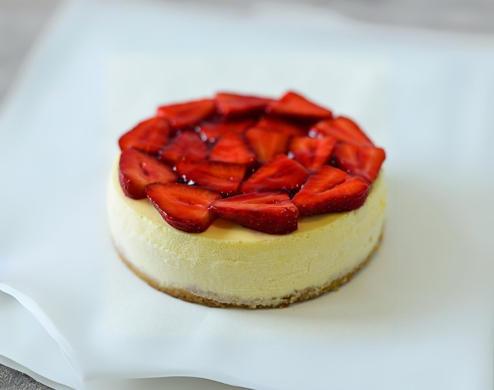 მარწყვის ჩიზქეიქი 6 ნაჭრიანი (სეზონურად მარწყვის კონფიტურით)