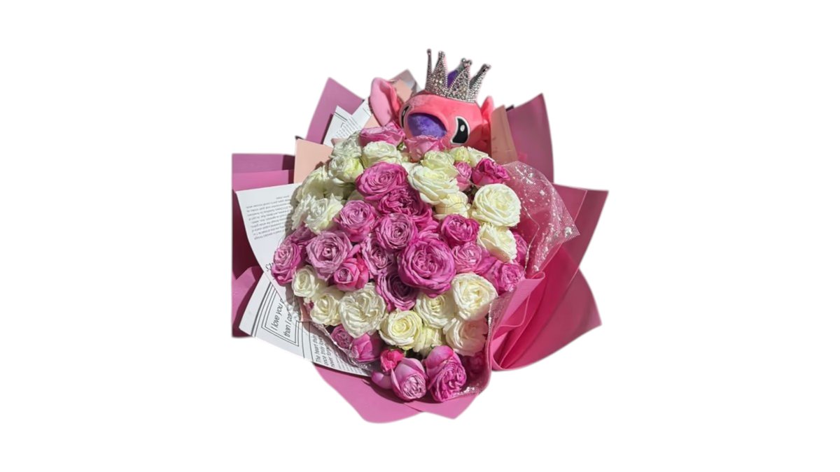 ვარდსიფერი სტიჩის თაიგული სპრეი ვარდებით