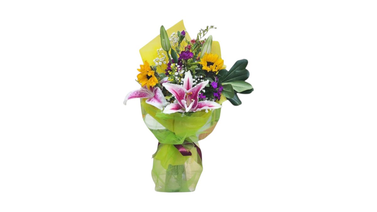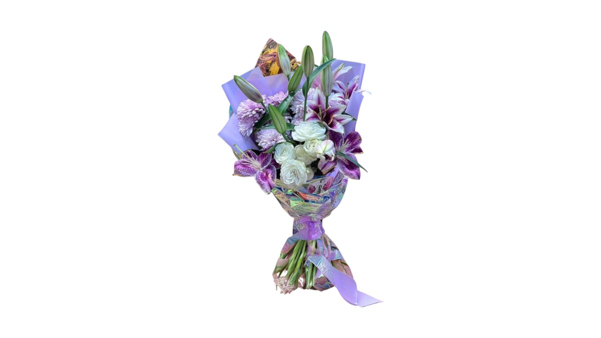 ლილის, გიპსოფილასა და ქრიზანთემის ნაზი, ფერადი თაიგული