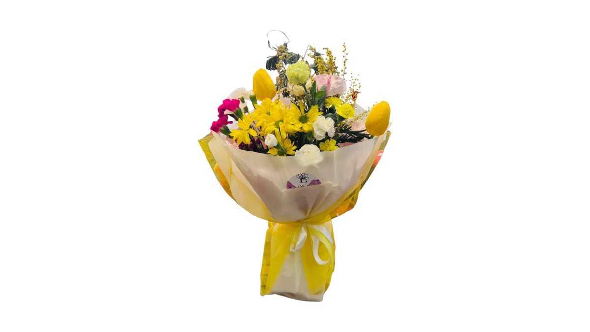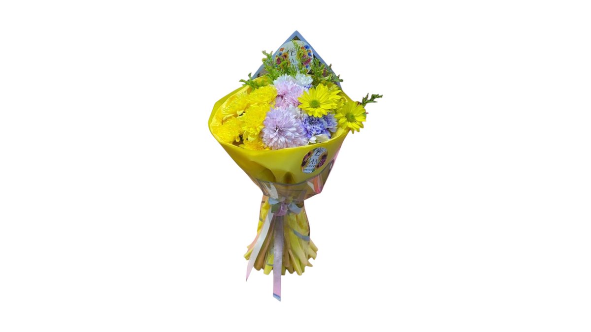 ქრიზანთემის მიქსი ყავსიფერ შეფუთვაში