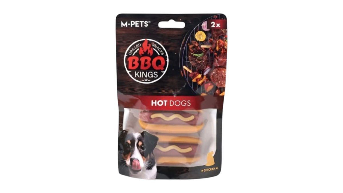 M-pets BBQ ჰოთ-დოგი, ქათმის სასუსნაო ძაღლებისთვის. 135გრ
