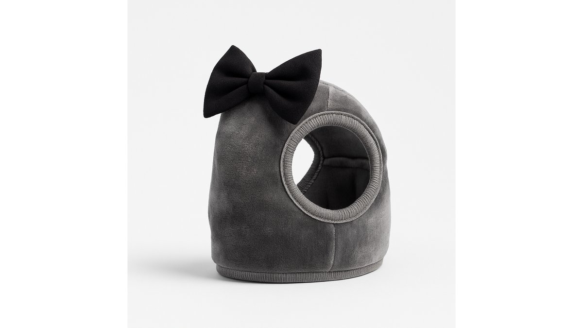 ნაცრისფერი საბელი ყვავილებით და ბანტით