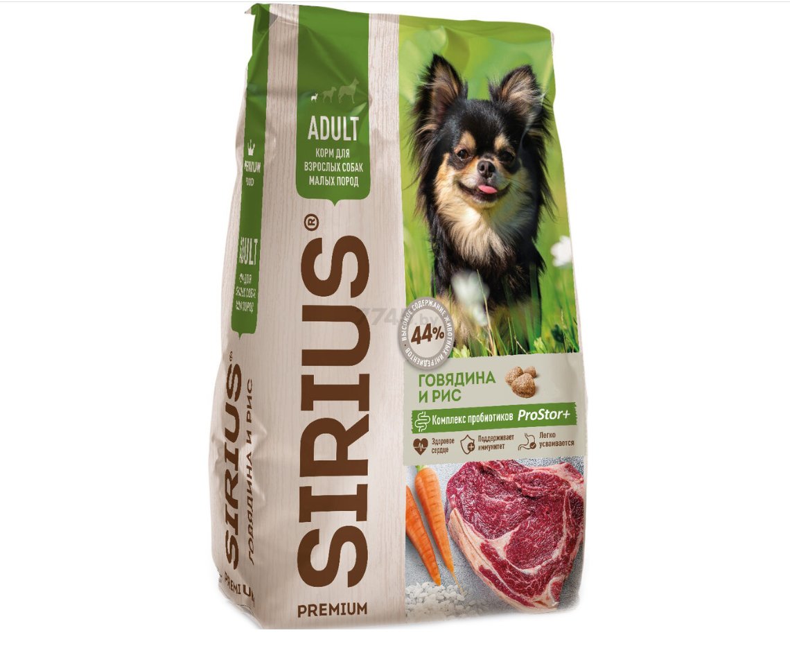Sirius მინი ჯიშის ძაღლისთვის ბრინჯი&საქონლის ხორცი 1კგ