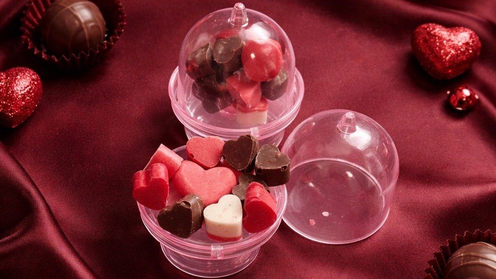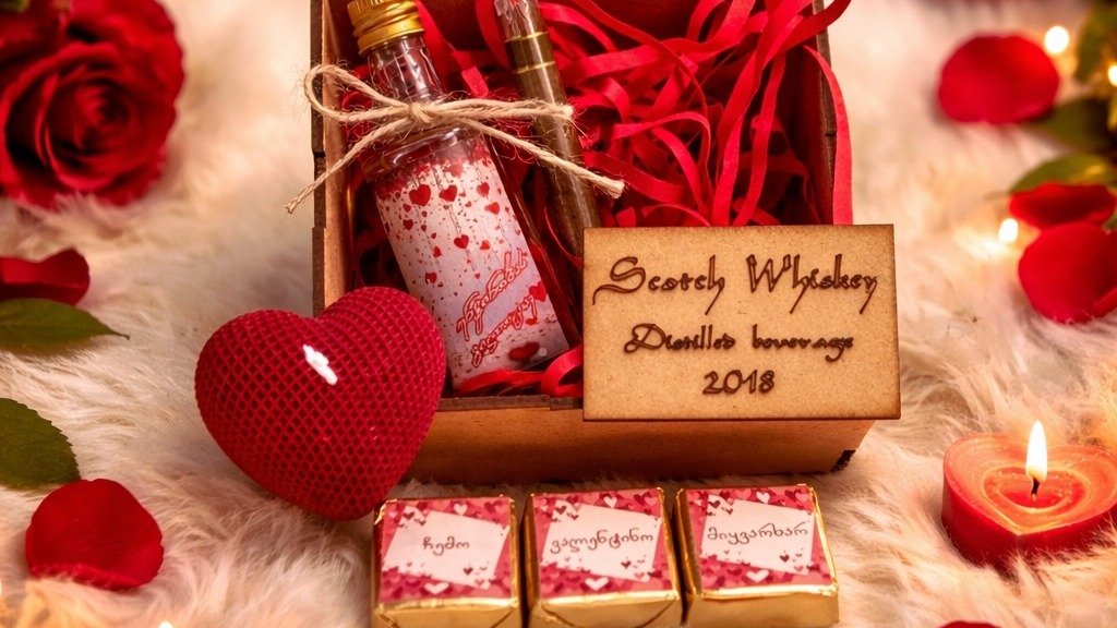 ვარდისფერი დათუნიას ბოქსი, შოკოლადებზე წარწერით “სულ უნდა მყავდეს მიყვარხარ“