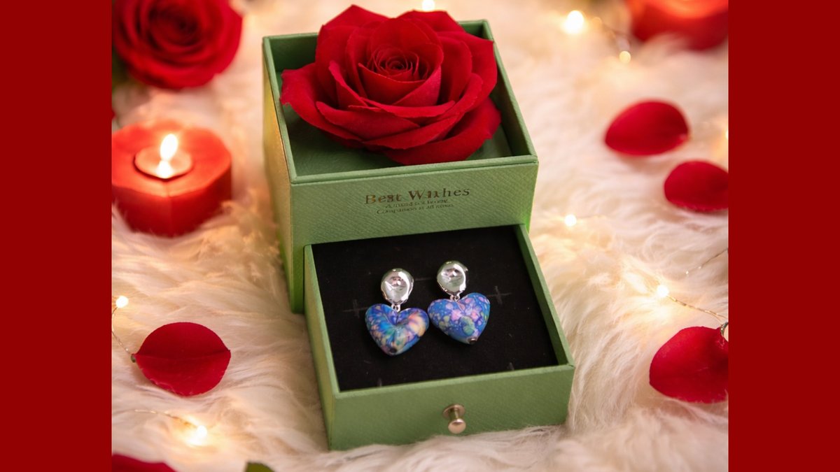 ლურჯი გულის საყურეები სასაჩუქრე ყუთით