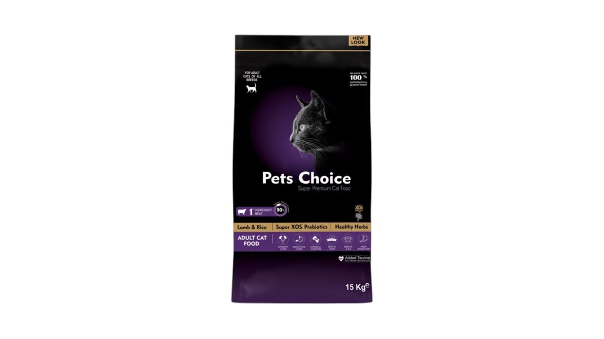 Pets Choice - ზრდასრული კატის სუპერ პრემიუმ მშრალი საკვები ბატკნით და ბრინჯით/Adult Cat Super Premium dry food, Lamb & Rice, 1 კგ.
