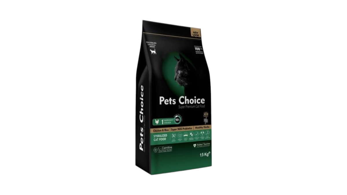 Pets Choice - სტერილური კატის პრემიუმ მშრალი საკვები ქათმით და ბრინჯით/Sterilised Cat Premium dry food, Chicken & Rice, 1 კგ.