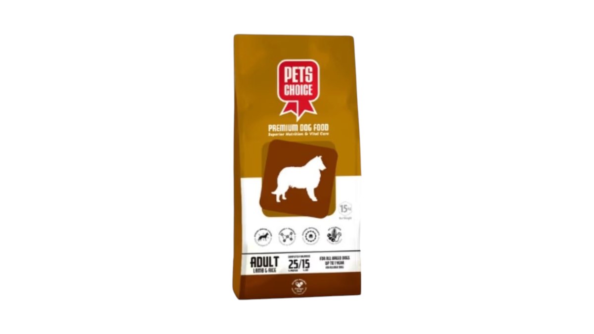 Pets Choice - ზრდასრული ძაღლის პრემიუმ მშრალი საკვები ბატკნით და ბრინჯით/Adult dog Premium dry food, Lamb & Rice, 1 კგ.