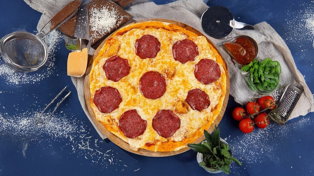 6 ნაჭერი პიცის ცომი, მოცარელას ყველი, პეპერონი ძეხვი, პიცის სოუსი