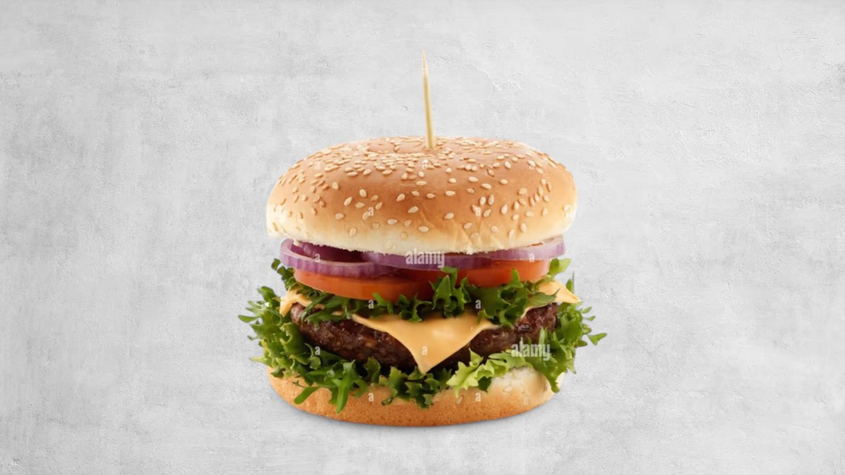 საქონლის ხორცი, ხახვი, სალათის ფურცელი, მდნარი ყველი, პომიდორი, ფქვილი, მაიონეზი, კეტჩუპი, სეზამის მარცვალი, მზესუმზირის ზეთი, შავი პილპილი, მარილი, ფრი