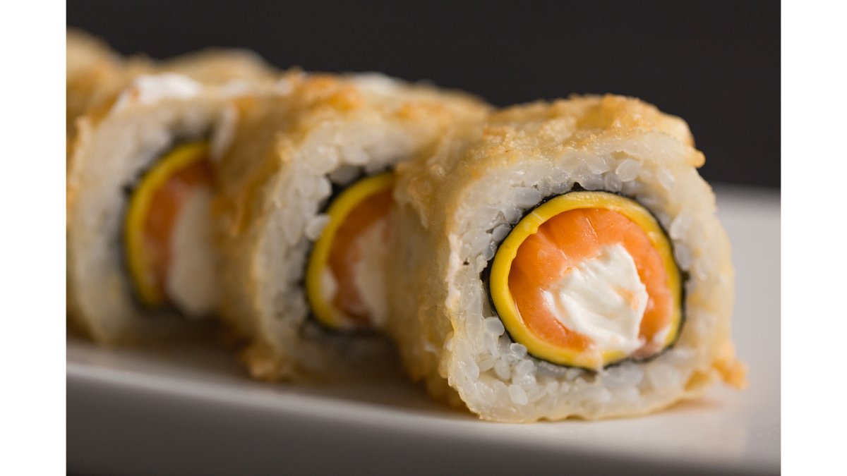 Жареный ролл с лососем и двумя видами сыра