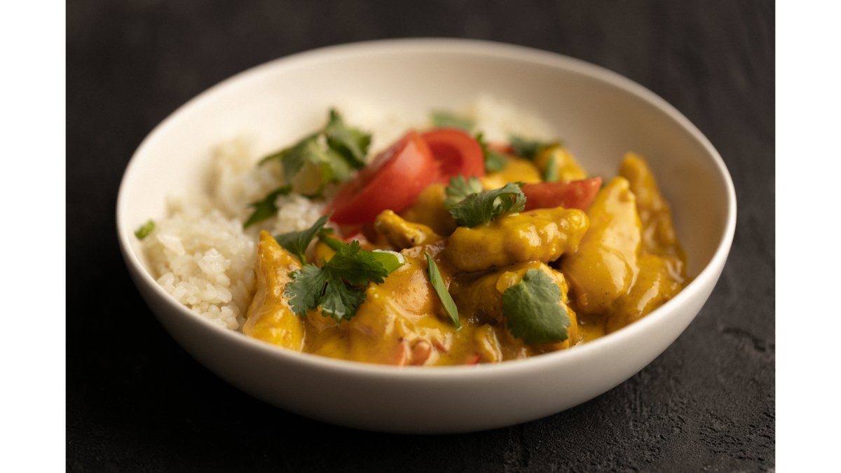 Курица в соусе карри с рисом