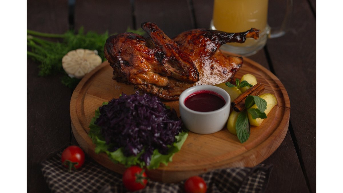 Половина утки с яблоками и квашеной капустой