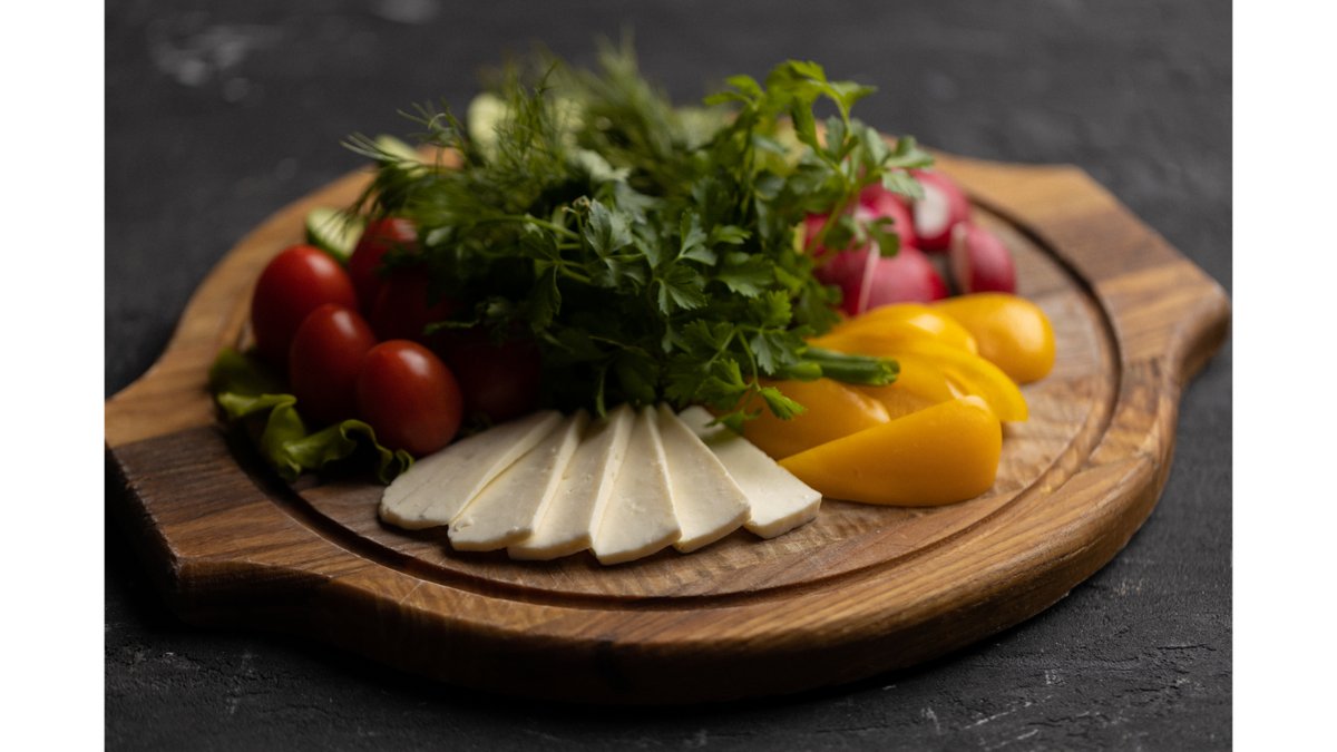 Свежие овощи и зелень с брынзой