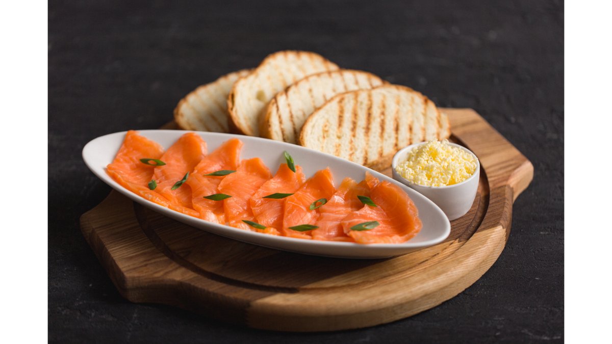 100 гр семга слабой соли 150 гр тосты