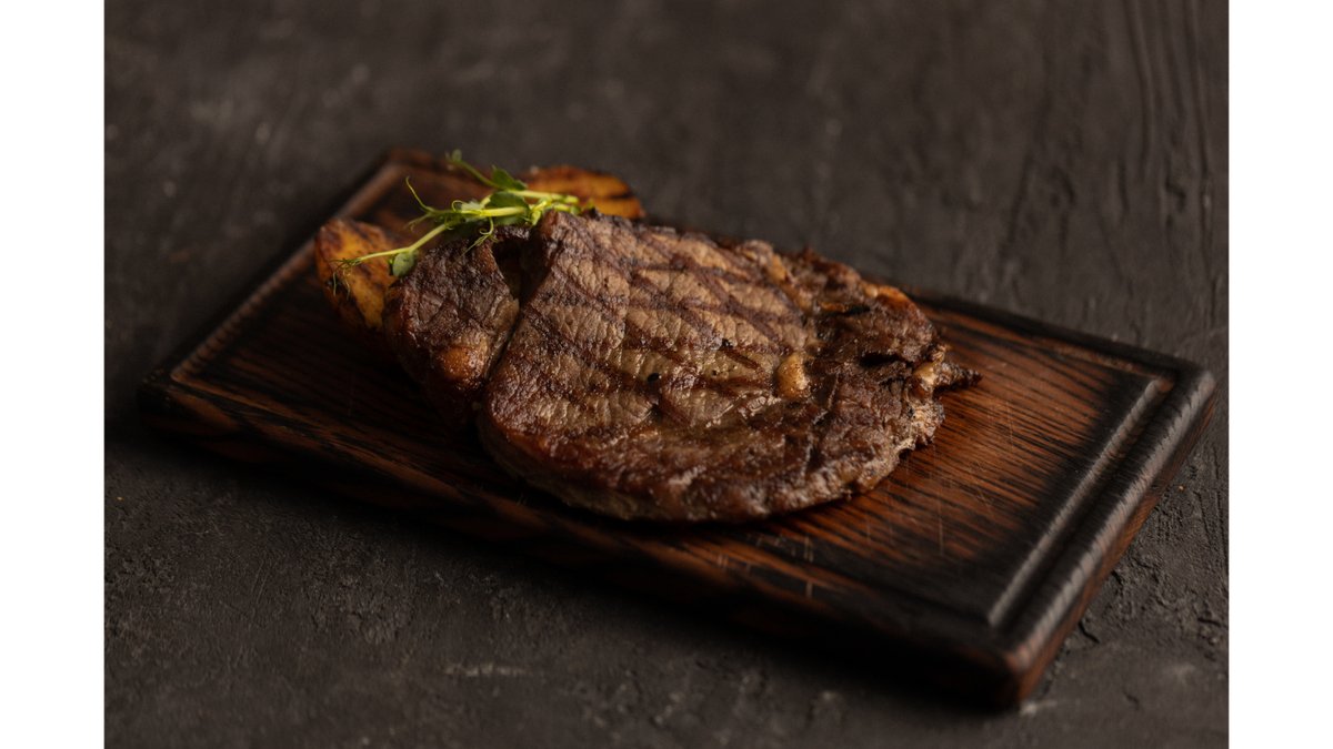 Стейк рибай с картофелем гриль и соусом барбекью