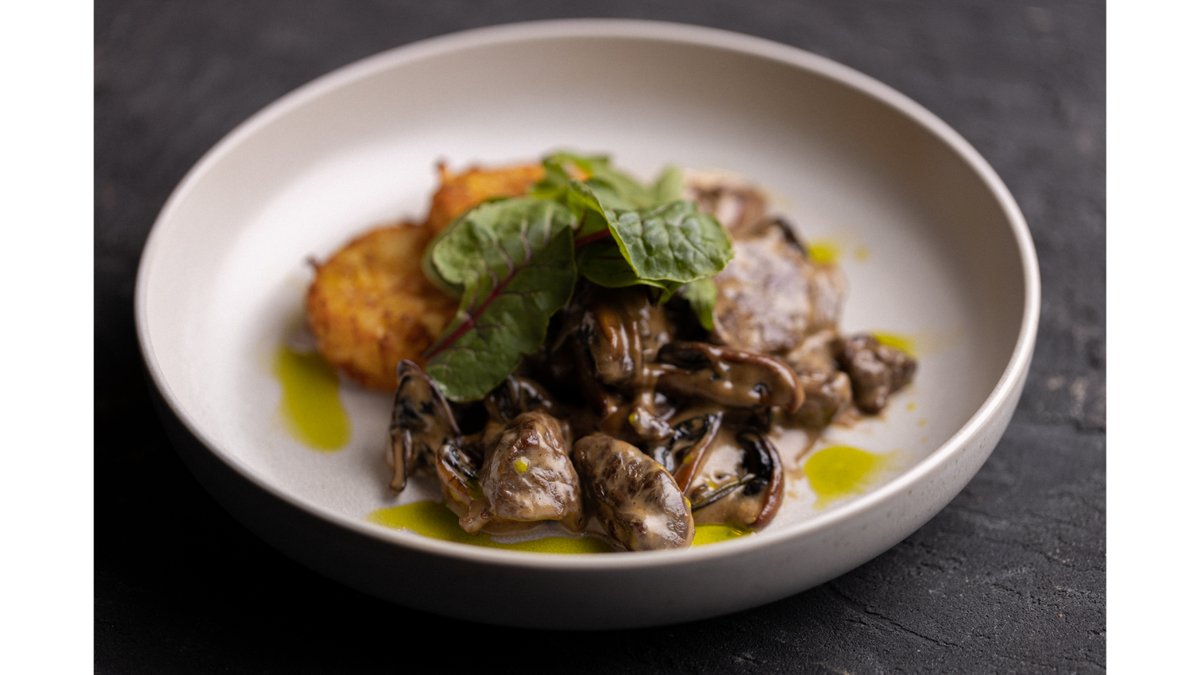 Телятина с грибами и картофельными драниками