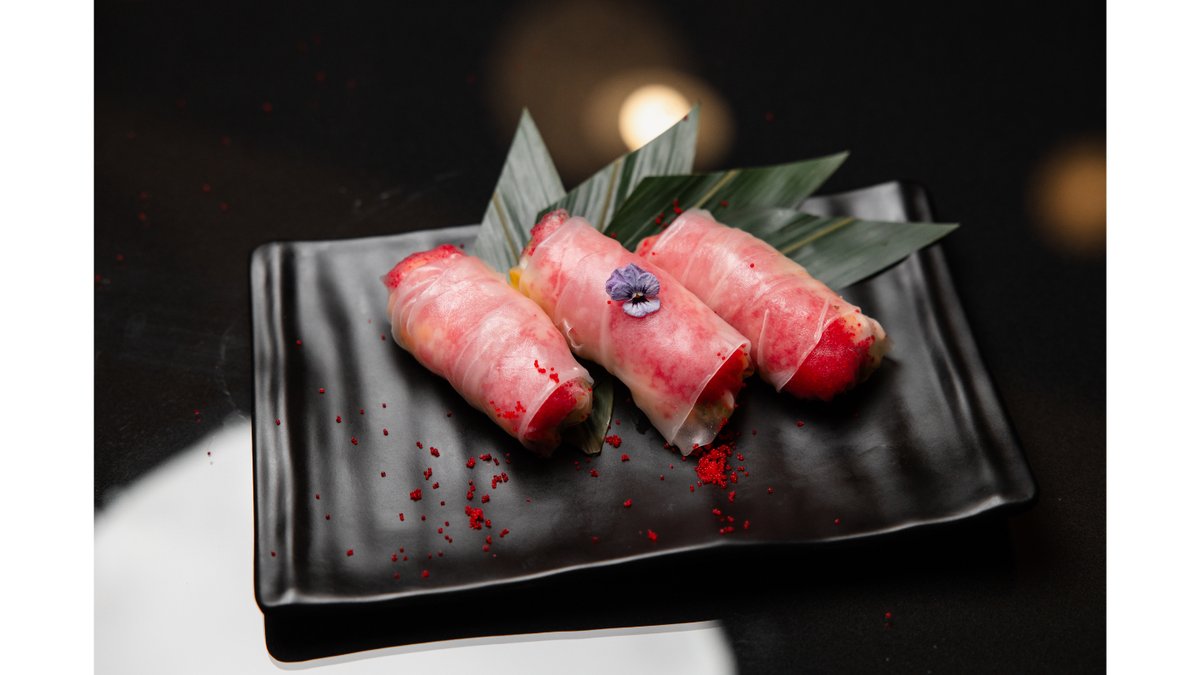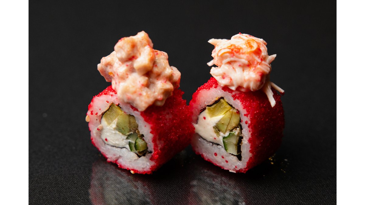 Краб, креветки, огурец, рисовая бумага, перец, масаго, соус