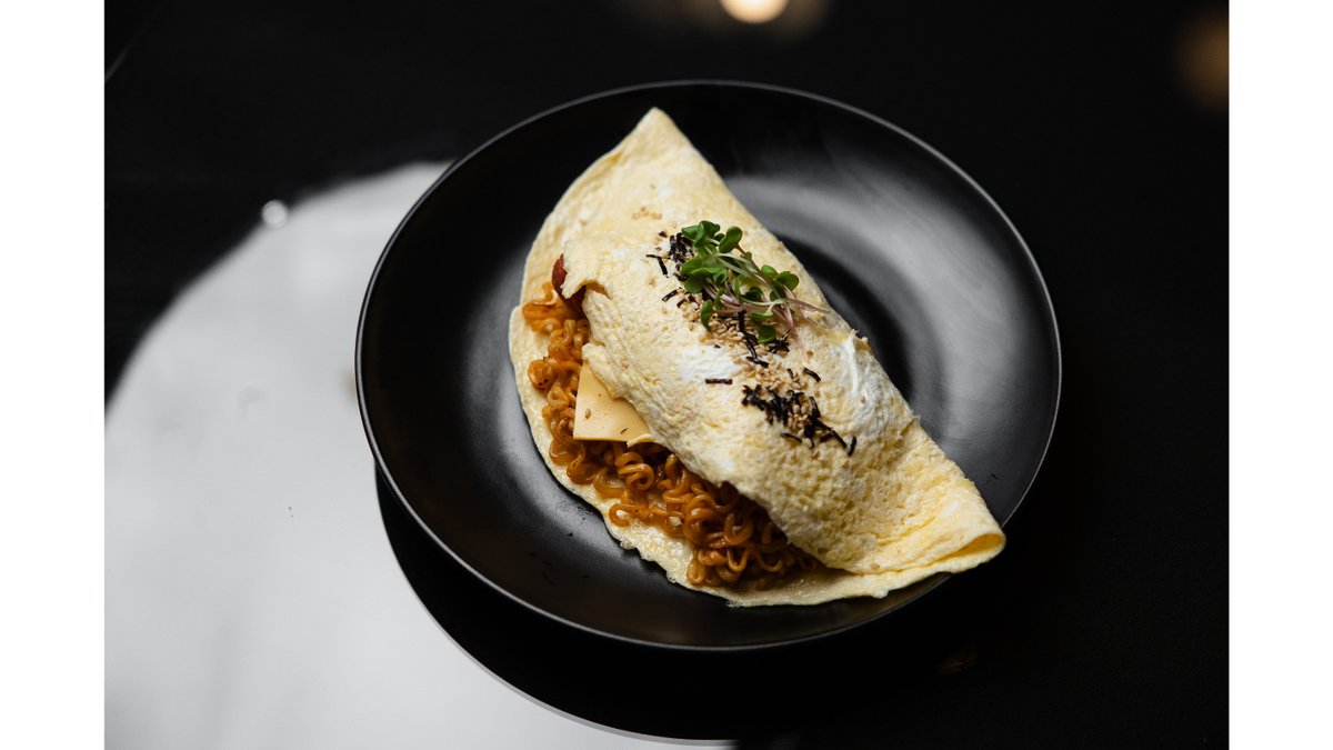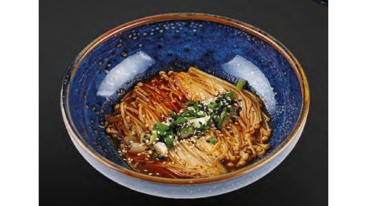 Эноки грибы, яйца, свит чили соус, соус кимчи, чеснок, масло