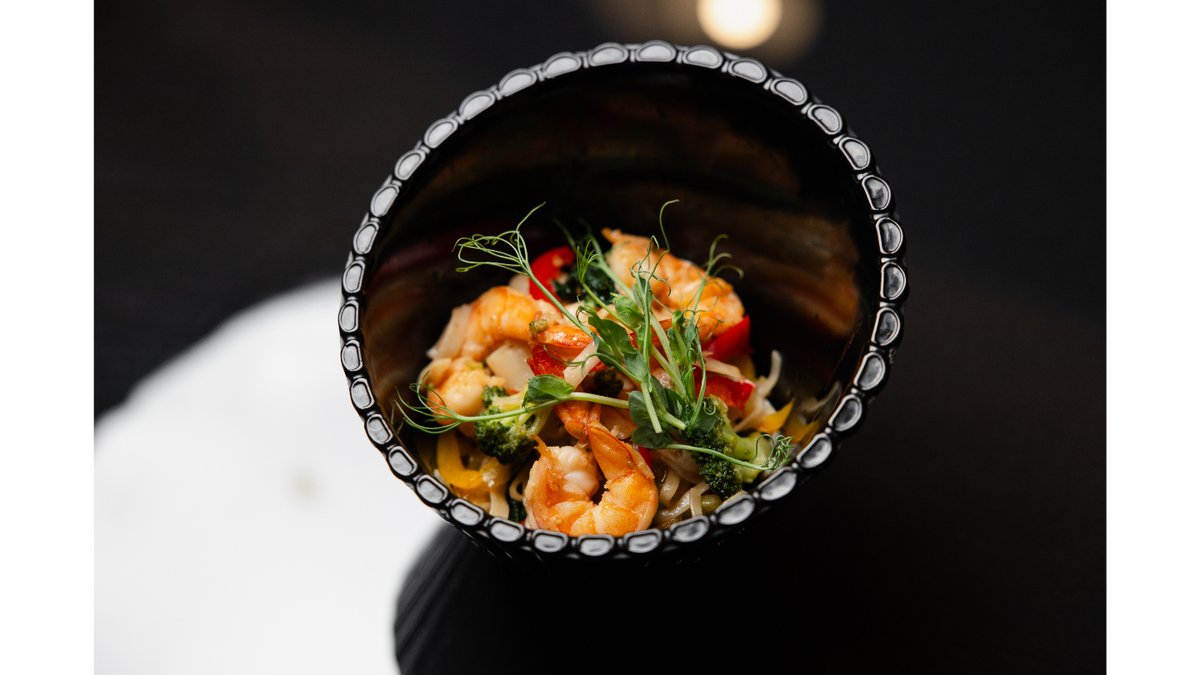 Рисовая лапша, креветки, кальмары, шпинат, перец светофор, чеснок, брокколи, устричный соус, соус свит чили
