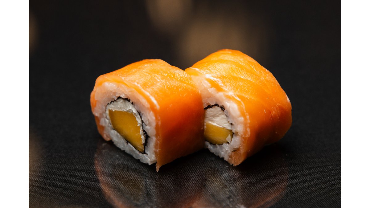 Америка, нигири в кляре с лососем, гункан с манго и лососем, в подарок: 1 литр лимонада