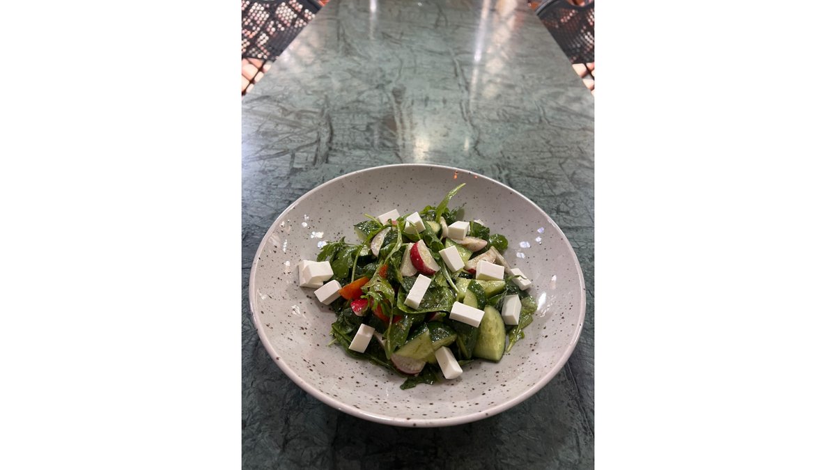 Нежное куриное филе обжаренное на гриле, с микс салатом, кукурузой и соусом