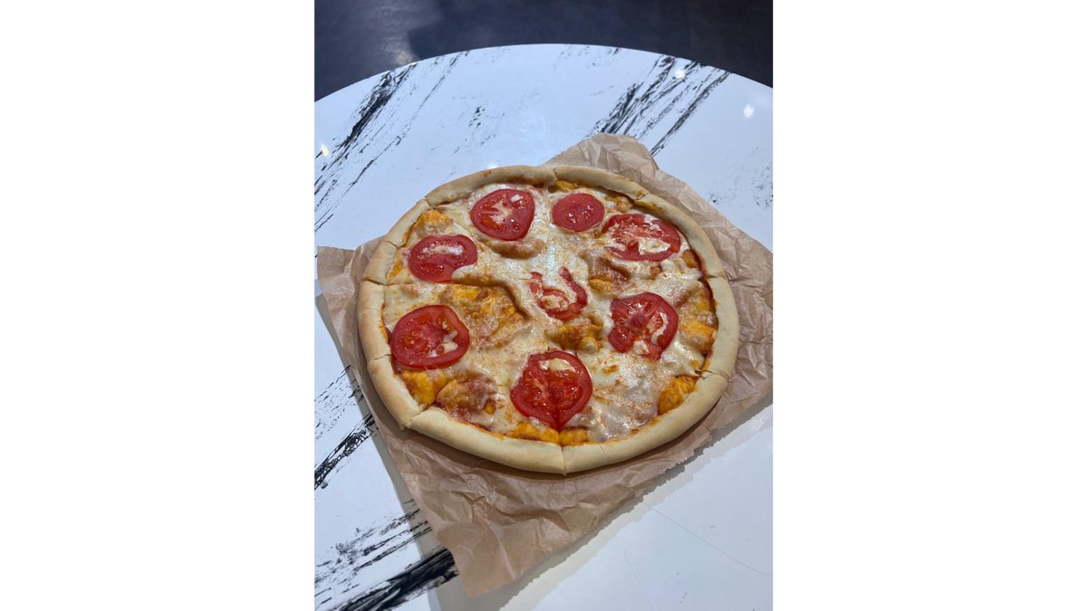 Пицца с копченной куриной грудкой, сыром моцарелла, шампиньонами и соусом пульпа